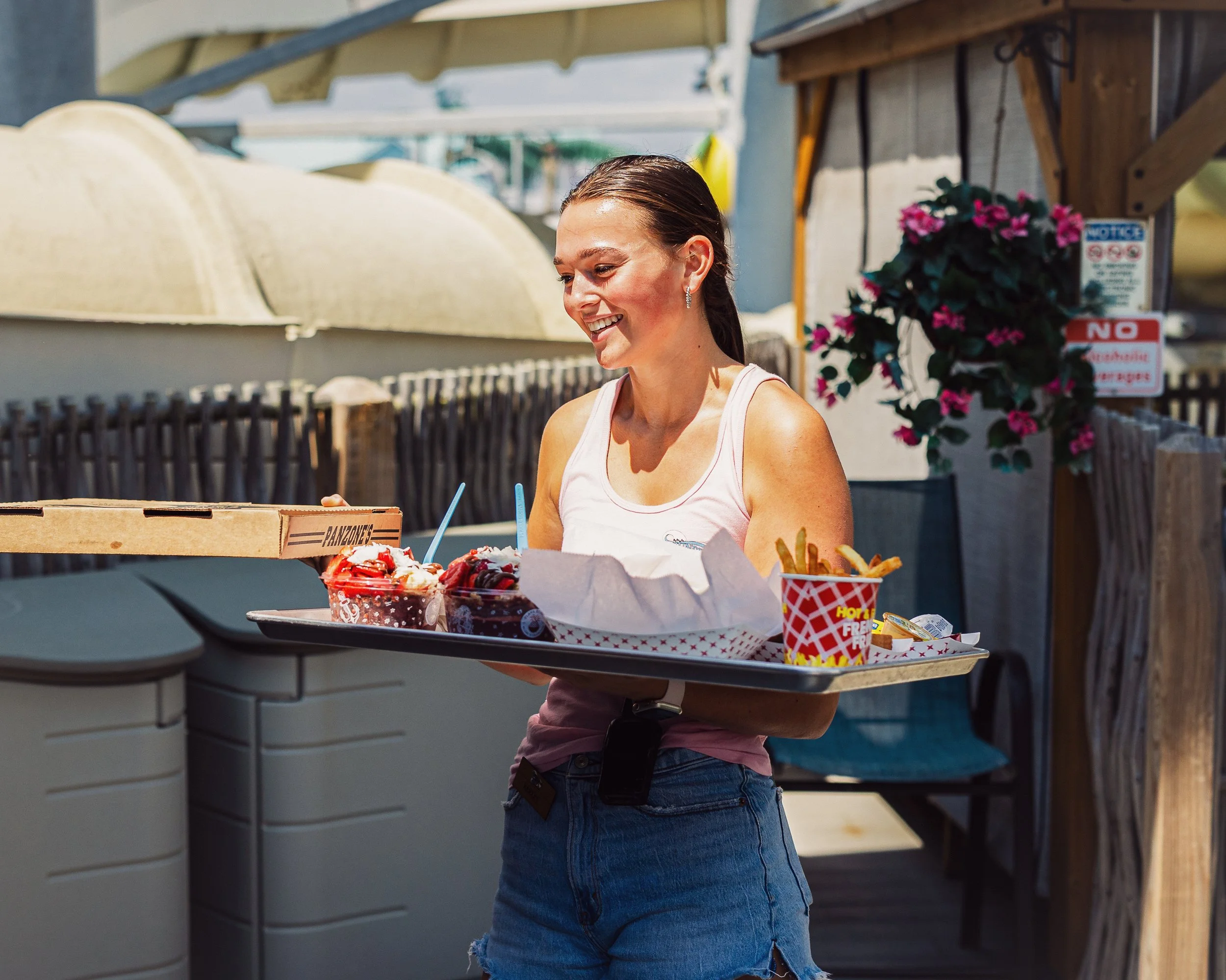 Cabana Servers provide personalized food and beverage service by delivering food orders directly to cabanas, while creating a welcoming and laid back experience for every guest.